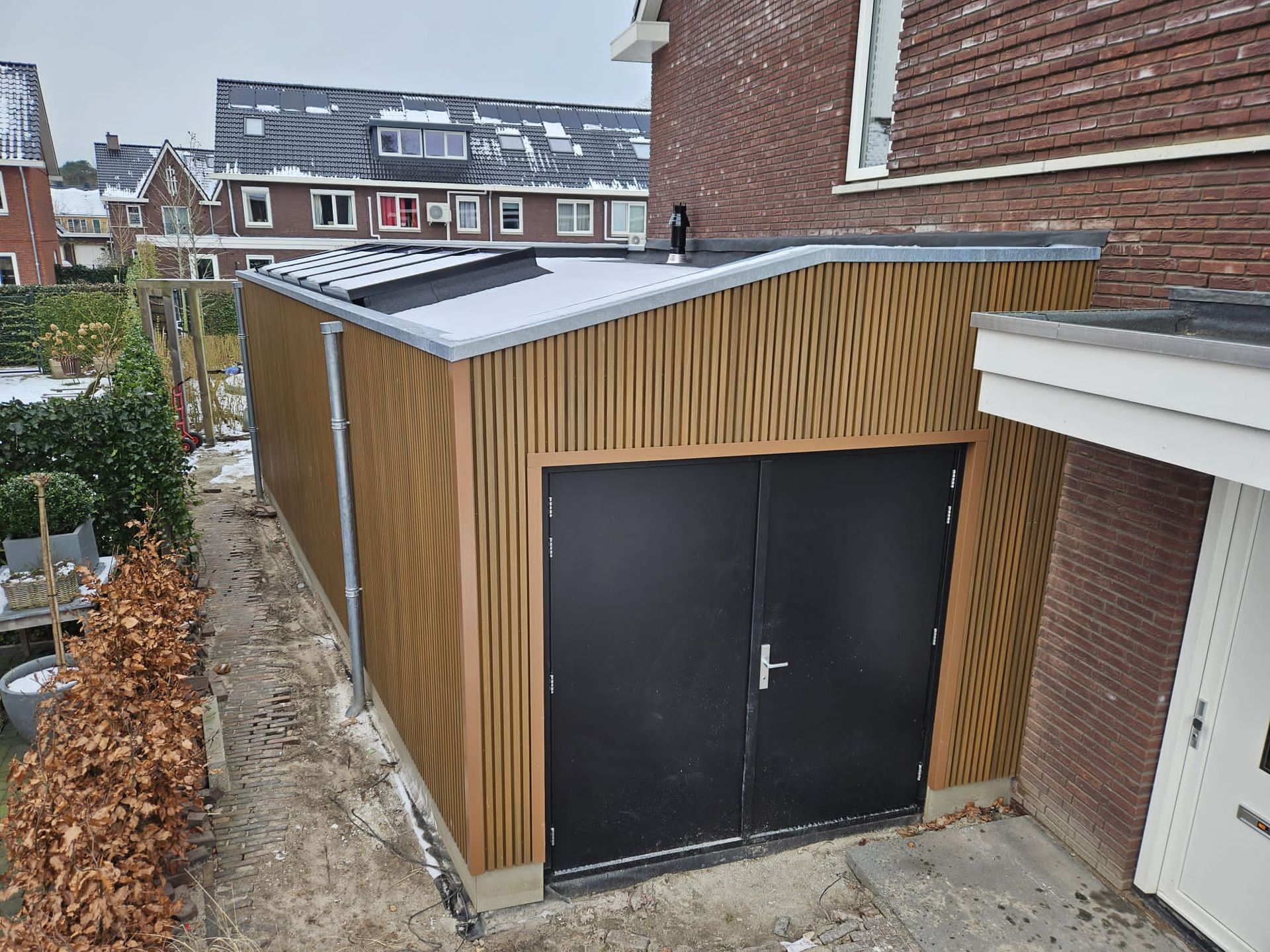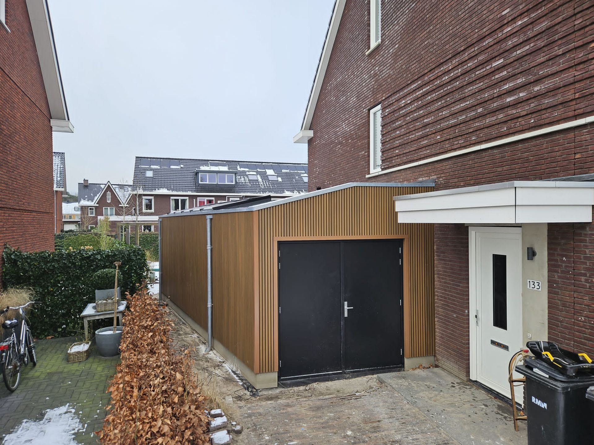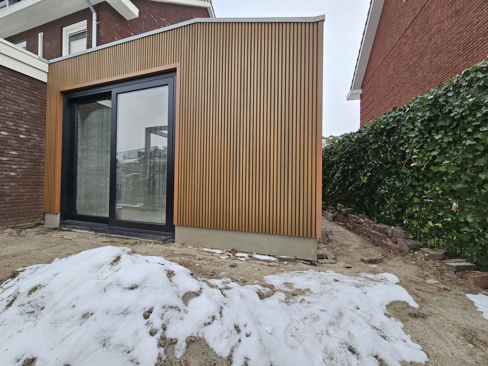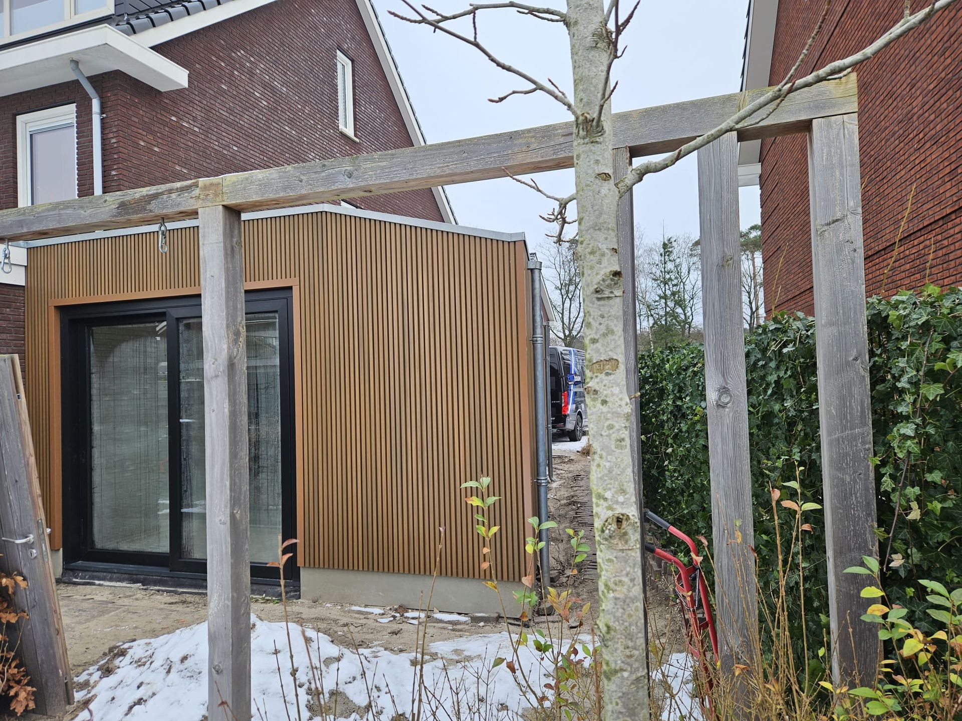 Door het gebruik van frake voor de buitenafwerking, het toevoegen van een lichtstraat en de aanbouw van binnen af te werken met een mooie tunnel haard naar de woonkamer toe. Hebben we een eigentijdse en luxueuze uitbreiding gerealiseerd die de woning een frisse uitstraling geeft.