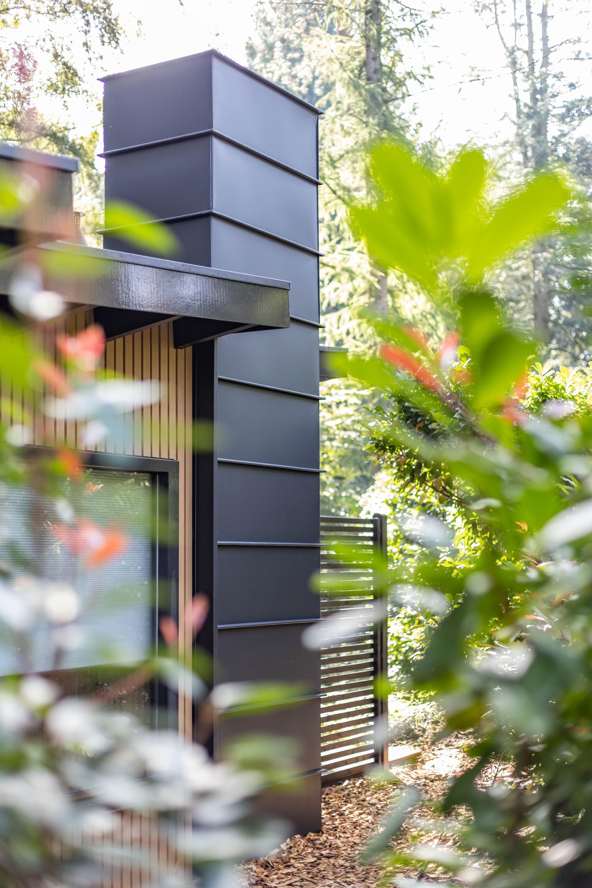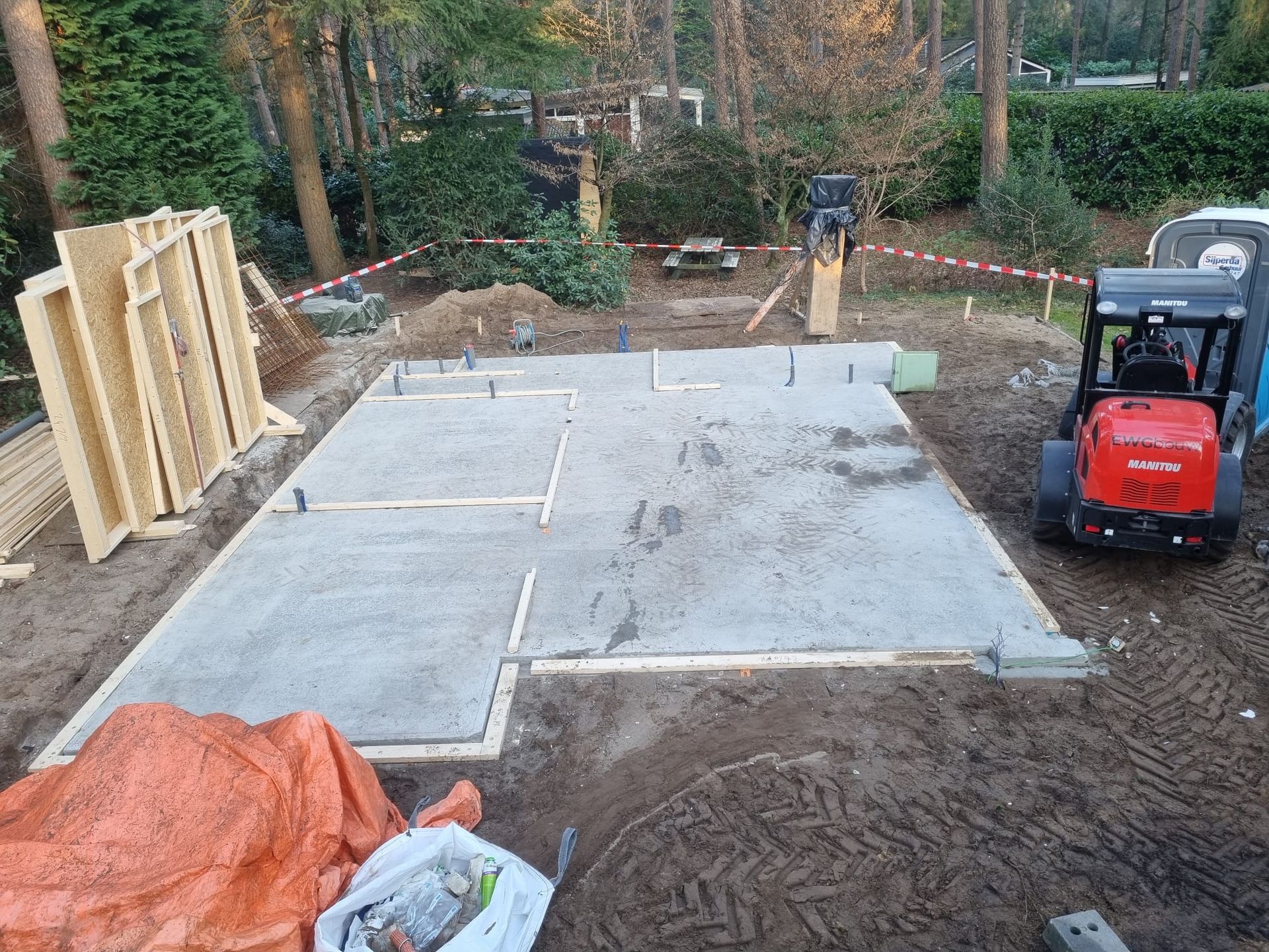 Zo werd er ook begonnen met de buiten afwerking; de woning werd gestuucd, de schuifwand kwam erin, de gevel en de schoorsteen werd bekleed en tot slot werd er geschilderd en kon er begonnen worden met de afwerking en de tuin.