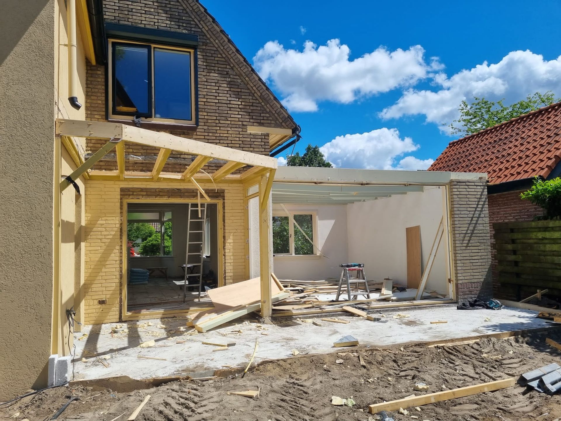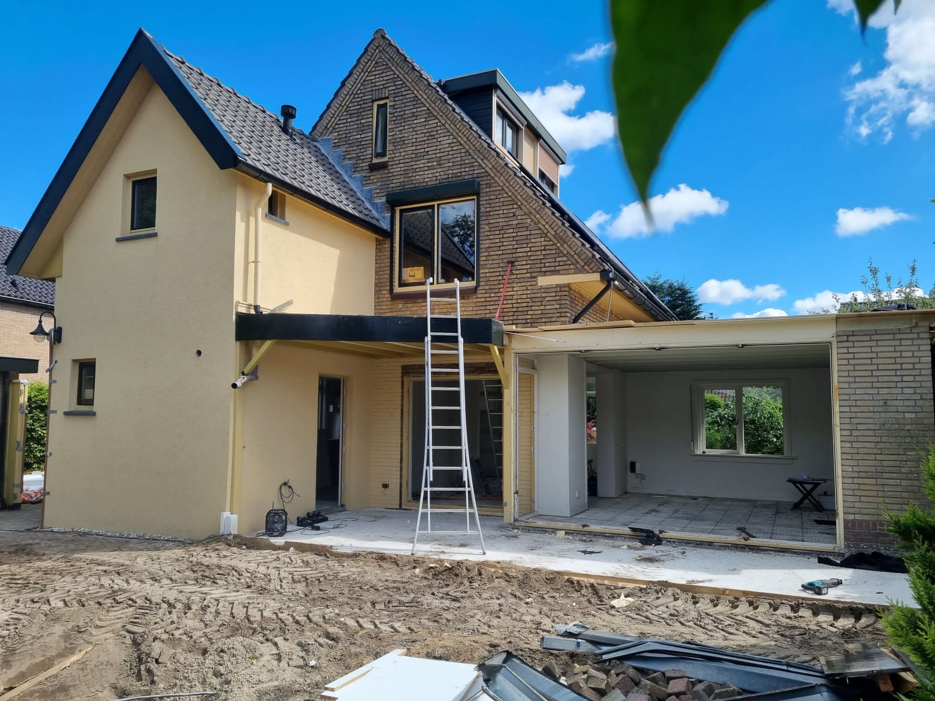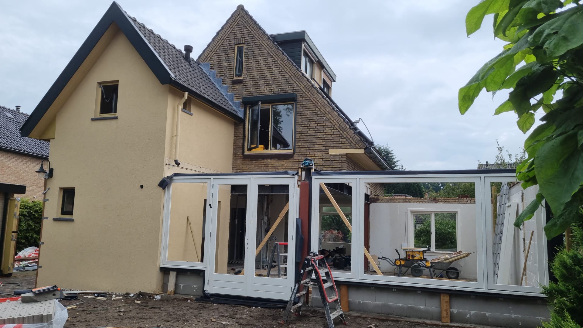 De woning wordt aan de achterzijde en zijgevel uitgebouwd en met de berekende constructie word de woning zo opgevangen dat er geen dragende muren meer hoeven te staan.