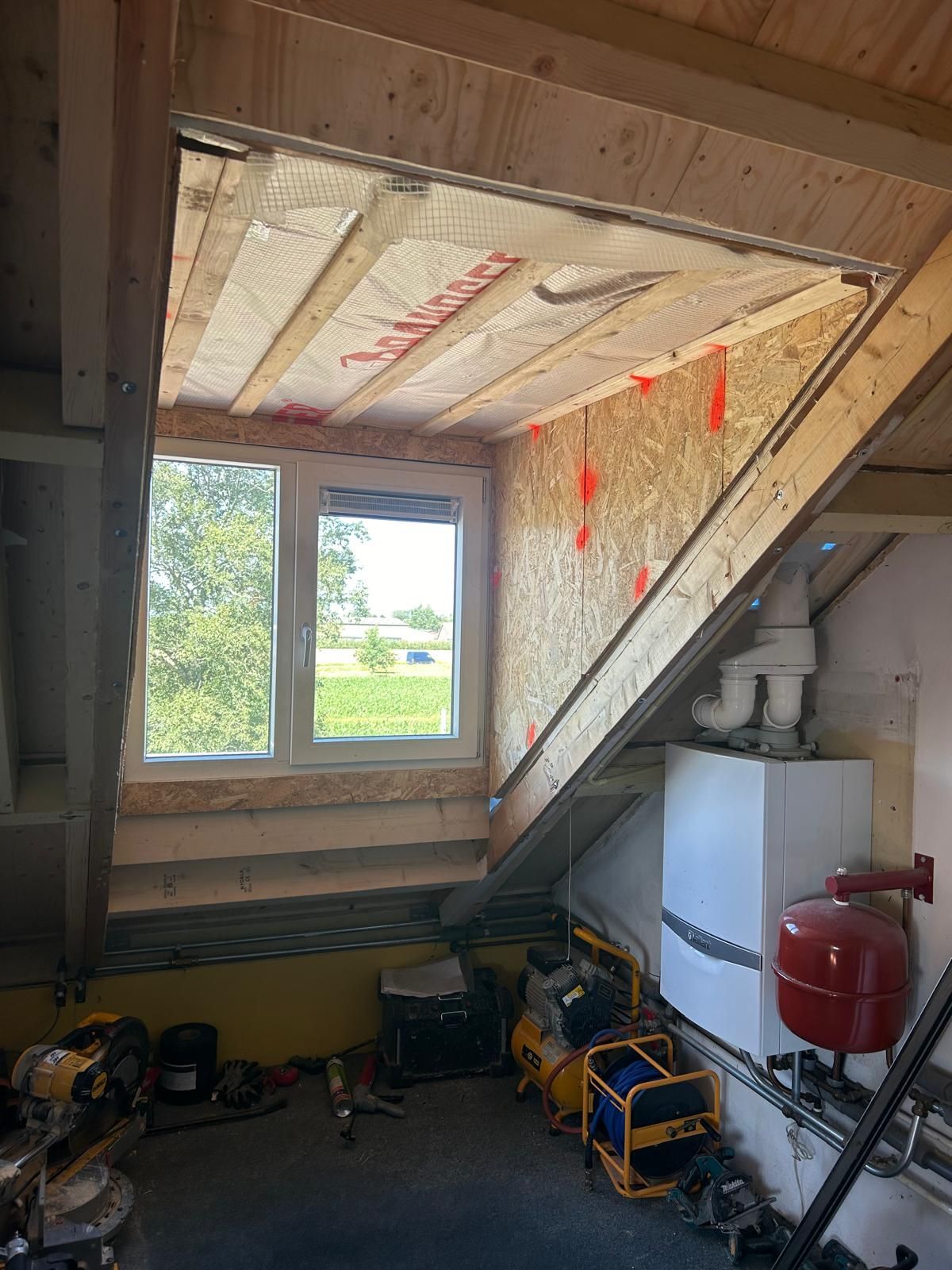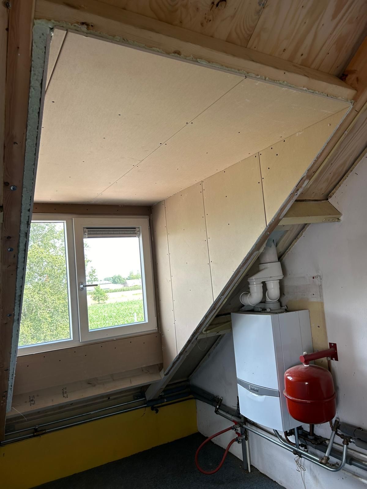 De dakkappellen werden geplaatst, de binnenzijde werd netjes afgetimmerd.