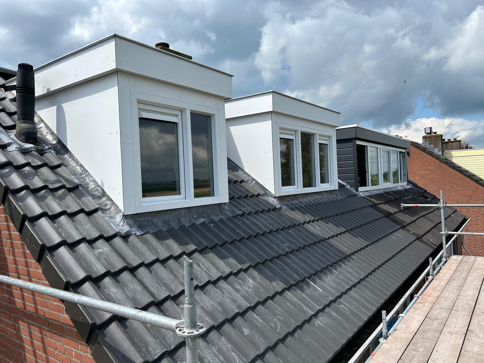 De dakpannen werden er opgelegd en de dakrenovatie kon opgeleverd worden.