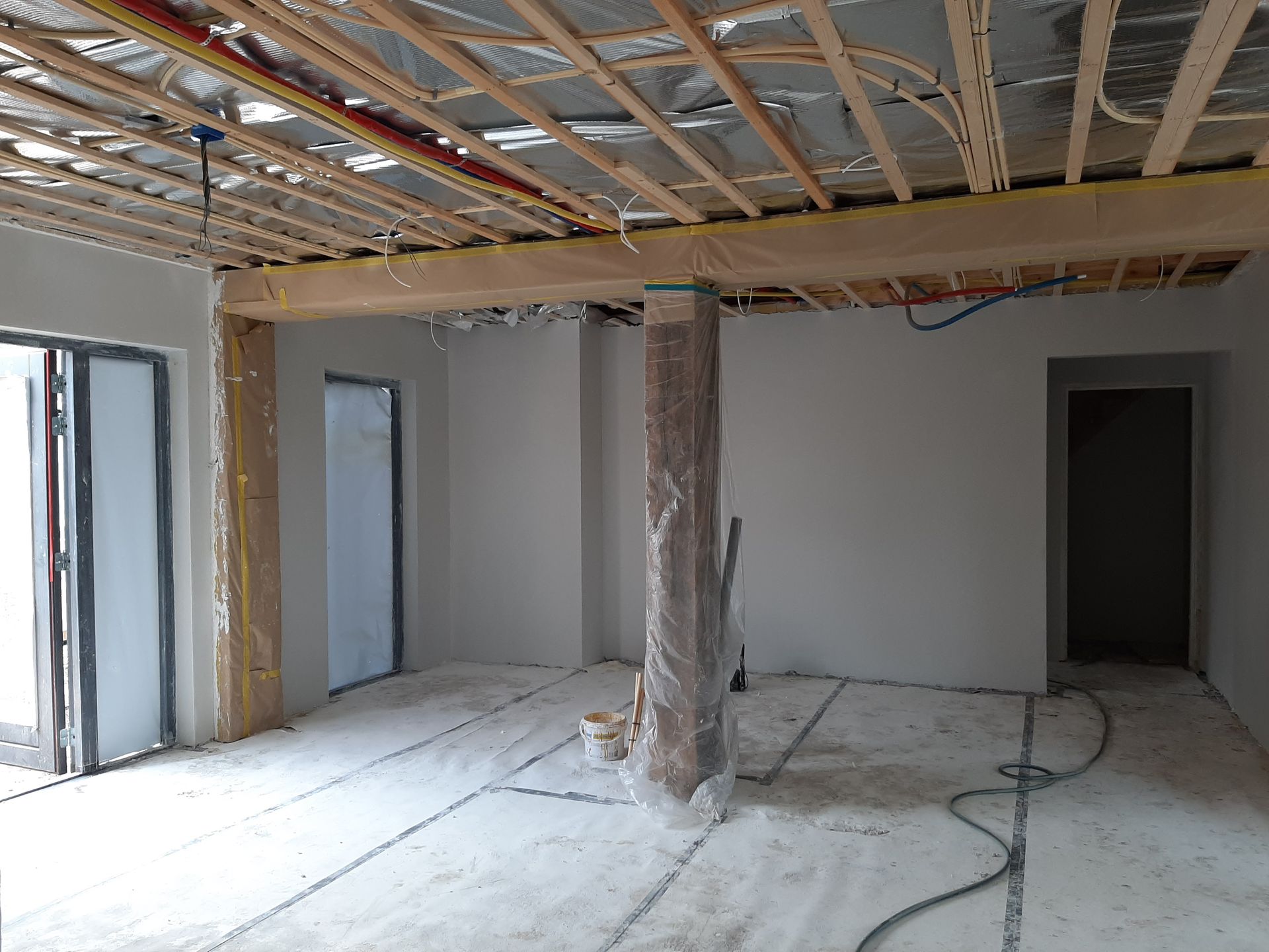 Tijdens de opbouwfase zijn er nieuwe lichtpunten gemaakt, is de volledige woning gestuct en geschilderd.