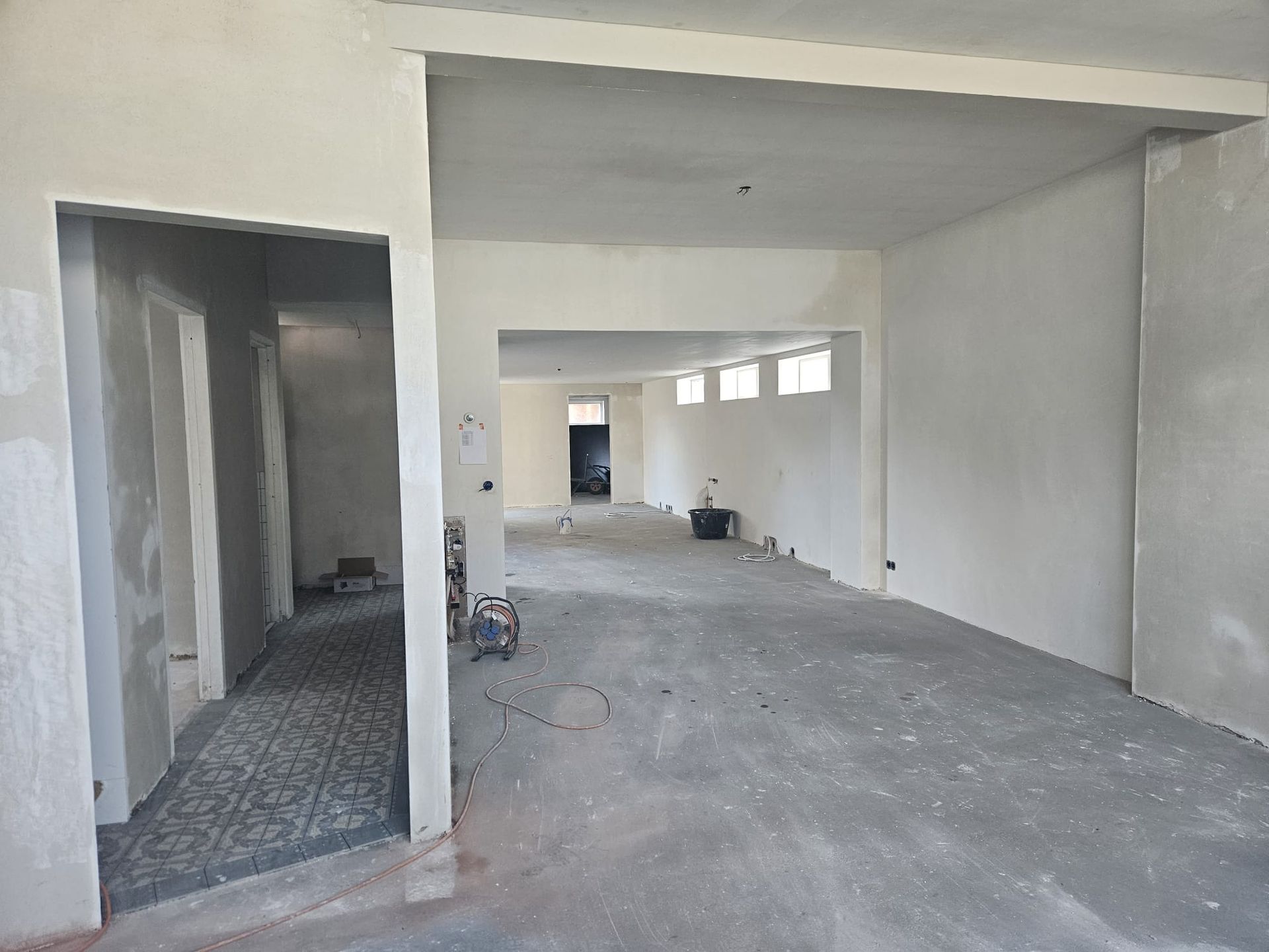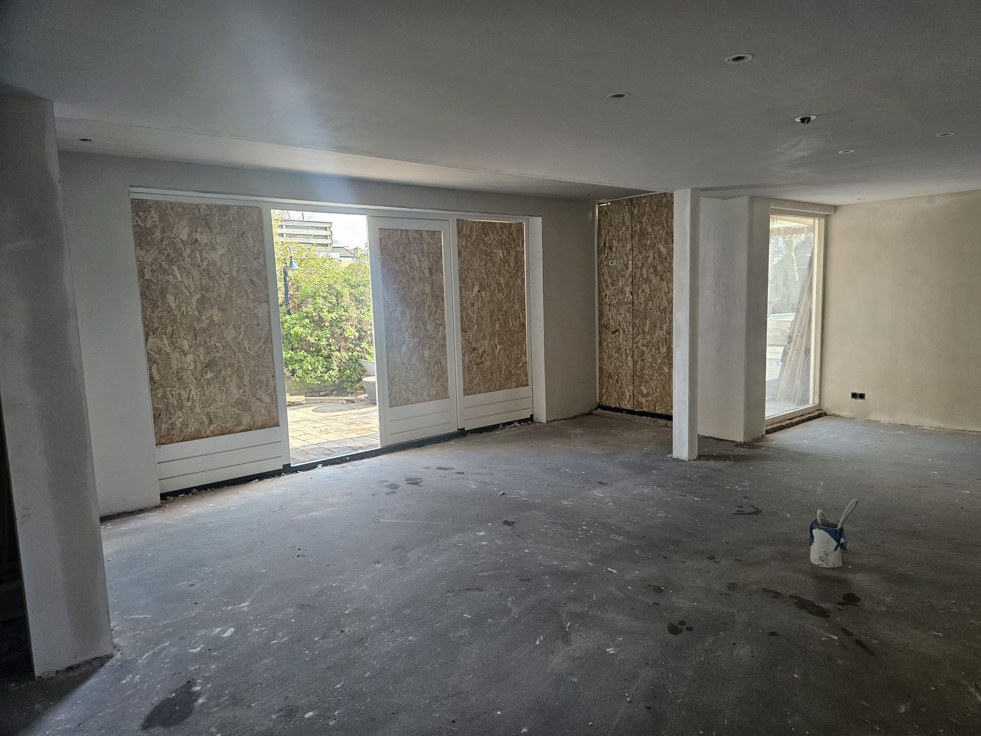 De houten vloer is gesloopt, deze is vervangen door een geïsoleerde betonvloer.